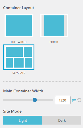 They are Container Layout, Main Container Width and Site Mode. You can implement these features to configure the site layout and change the mode of your site.