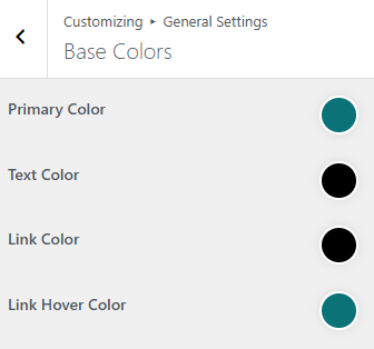 - Base Colors enables you to employ colors for overall website. They aid in reflecting the main theme of the company. You can choose Primary Color, Text Color, Link and Link Hover color in this section.
