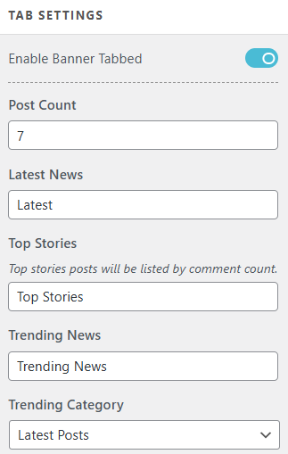- Provide your custom names to the three sub sections of tab → Latest News, Top Stories and Trending News
