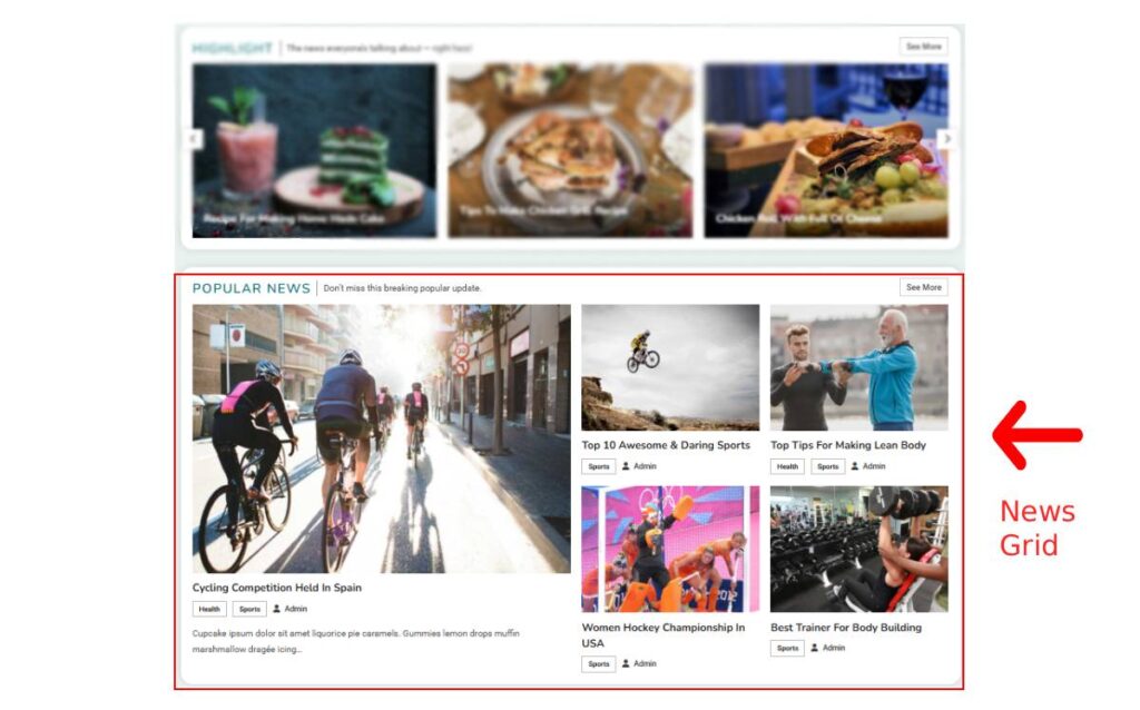 - News Express theme provides you with 2 Block layouts as shown in the image above.