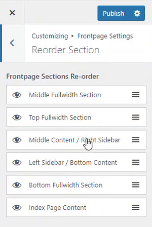 - Then navigate to Frontpage Settings → Re-order Section to actually realign items as needed.