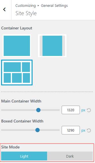 - Under Site Mode section, you can choose to click between Light and Dark button to enable that mode for your default mode.