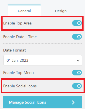 - After that toggle on Enable Social Icon to enable top header for displaying social icons.