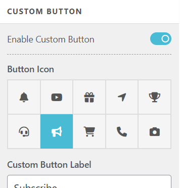 - Custom Button section allows you to add your own personalized button to the Main Header Area with its own label and link.