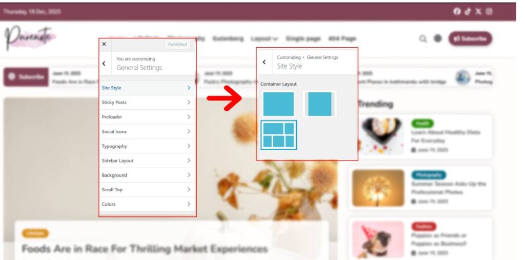 • Look for Site Style from the given option, and then choose your preferred layout as shown in the image above.