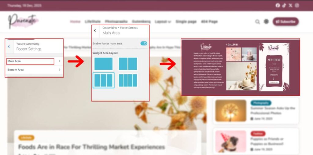 - Go to Footer Settings → Main Area.