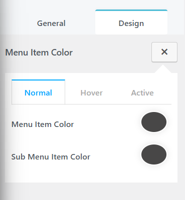 - From Design Tab, Choose colors in Normal state, Hover and Active state of the Menu Items