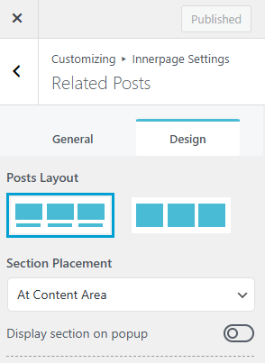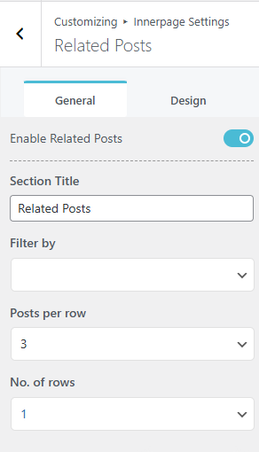 • Go to your WordPress Dashboard and look for Related Posts in Innerpage Settings from the customizer (Appearance → Customize)